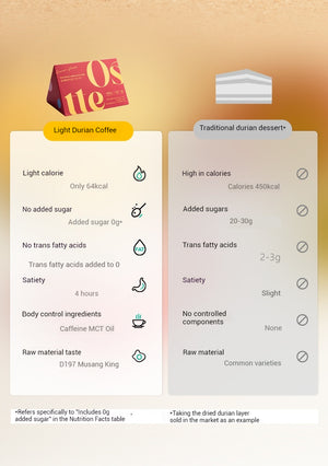 A creamy butter coffee blended with durian and MCT oil for sustained energy. No added cane sugar,